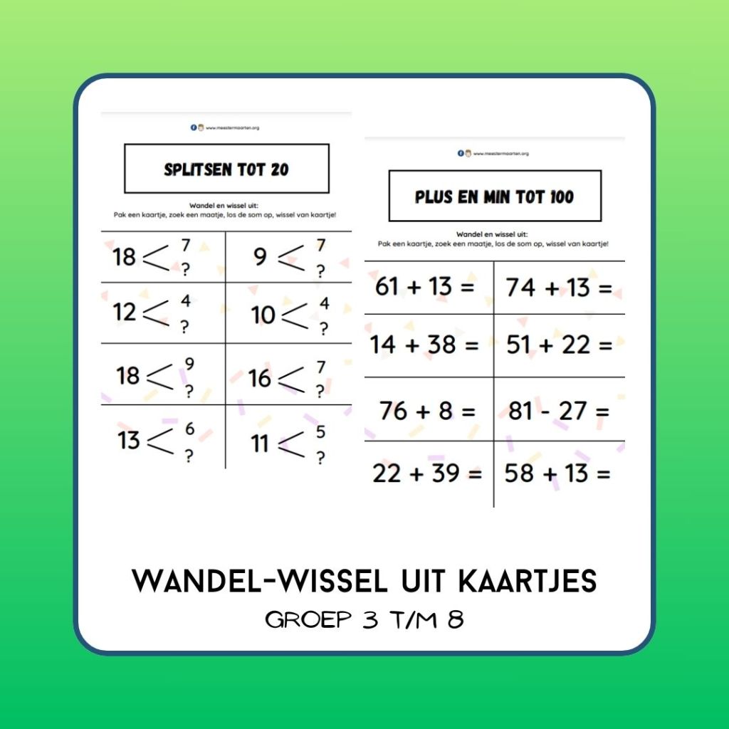 Automatiseer sommen met de activerende werkvorm wandel-wissel-uit. Zoek een maatje, deel de som, ruil van kaartje en ga verder!