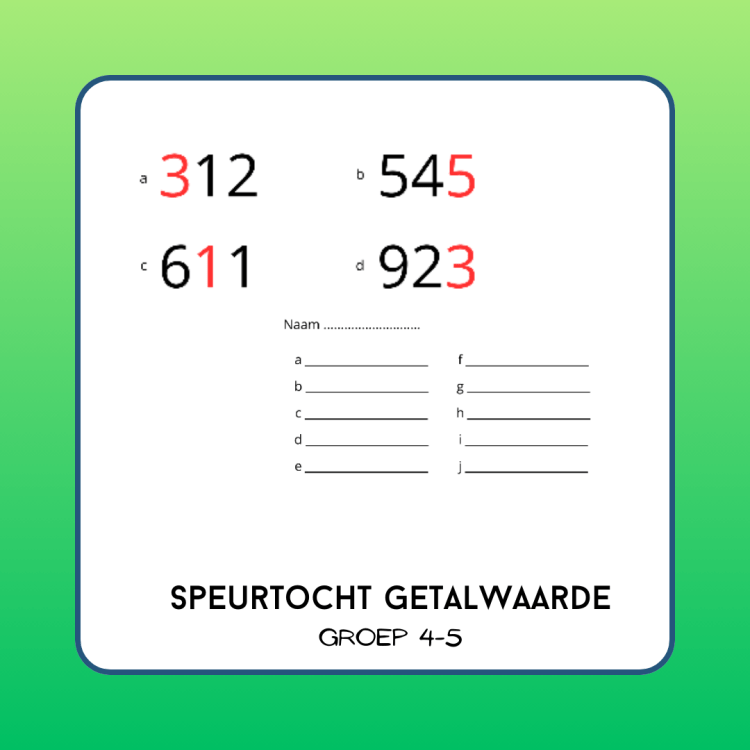 Met deze speurtocht oefenen de leerlingen met de waarde van getallen. Vind de afbeeldingen en schrijf de correcte waarde van het rode getal op de scorekaart.