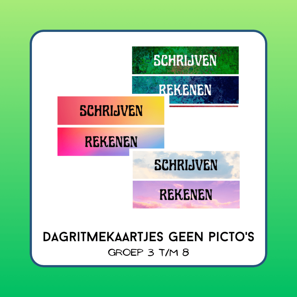 Deze set van 21 dagritme kaarten komt in drie varianten: wolken, textures en gradient. De dagen van de week, maanden etc. zijn niet inbegrepen.