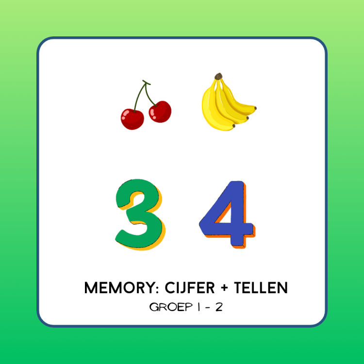 Een memory spel om te oefenen met cijfers en tellen. Kaarten op A5 formaat zodat deze multifunctioneel kunnen worden ingezet.