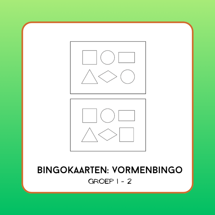 Oefen met de basisvormen en kleuren met deze bingokaarten. Laat de kinderen zelf eerst de bingokaart inkleuren in de kleuren naar keuze, laat steeds een vorm in een bepaalde kleur zien. Staat deze op de kaart? Streep ‘m dan af!