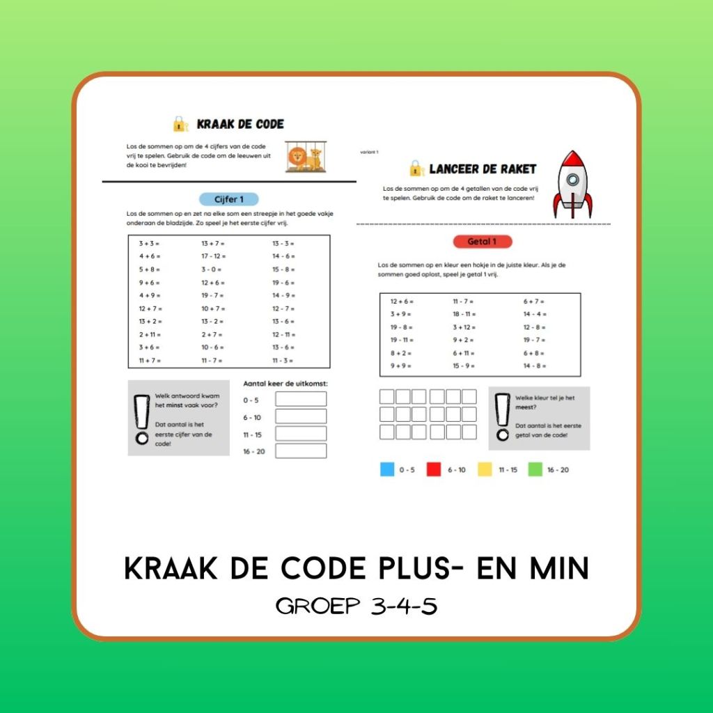 Met dit spel oefenen de leerlingen optellen en aftrekken terwijl zij de code proberen te achterhalen. Voor groep 3 tot 20, groep 4 tot 100 en groep 5 tot 100 met extra uitdaging.