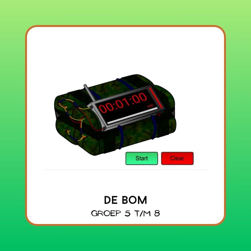 Beantwoord zo veel mogelijk vragen goed voor de bom afgaat. Alle tips en instructie is te vinden in de lesbrief!