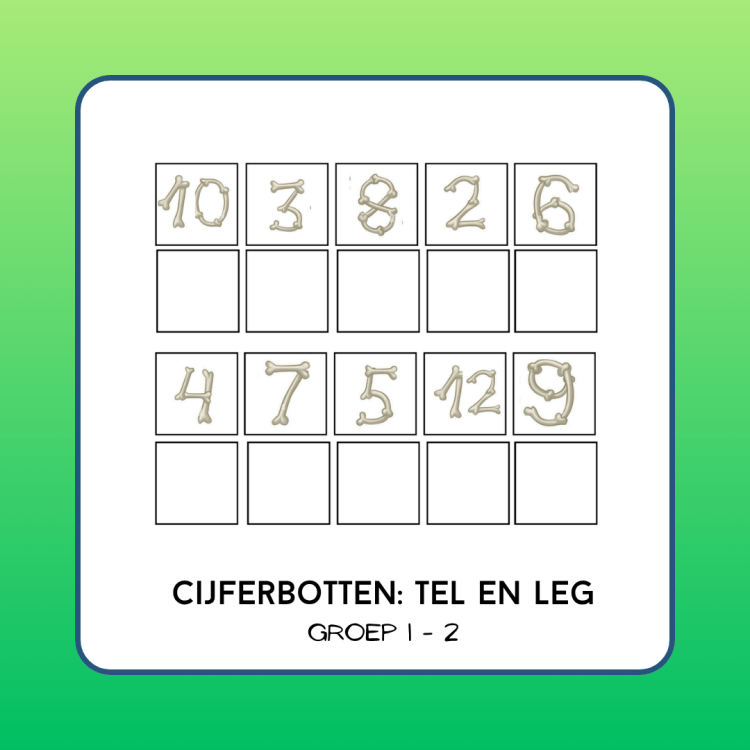 Met concreet materiaal (dopjes, fiches, ect.) leggen de kinderen het juiste getalbeeld onder het cijfer.