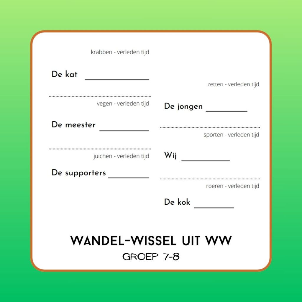 Werkwoorden oefenen met de coöperatieve werkvorm wandel-wissel uit. Meer uitleg in de lesbrief bij het bestand!
