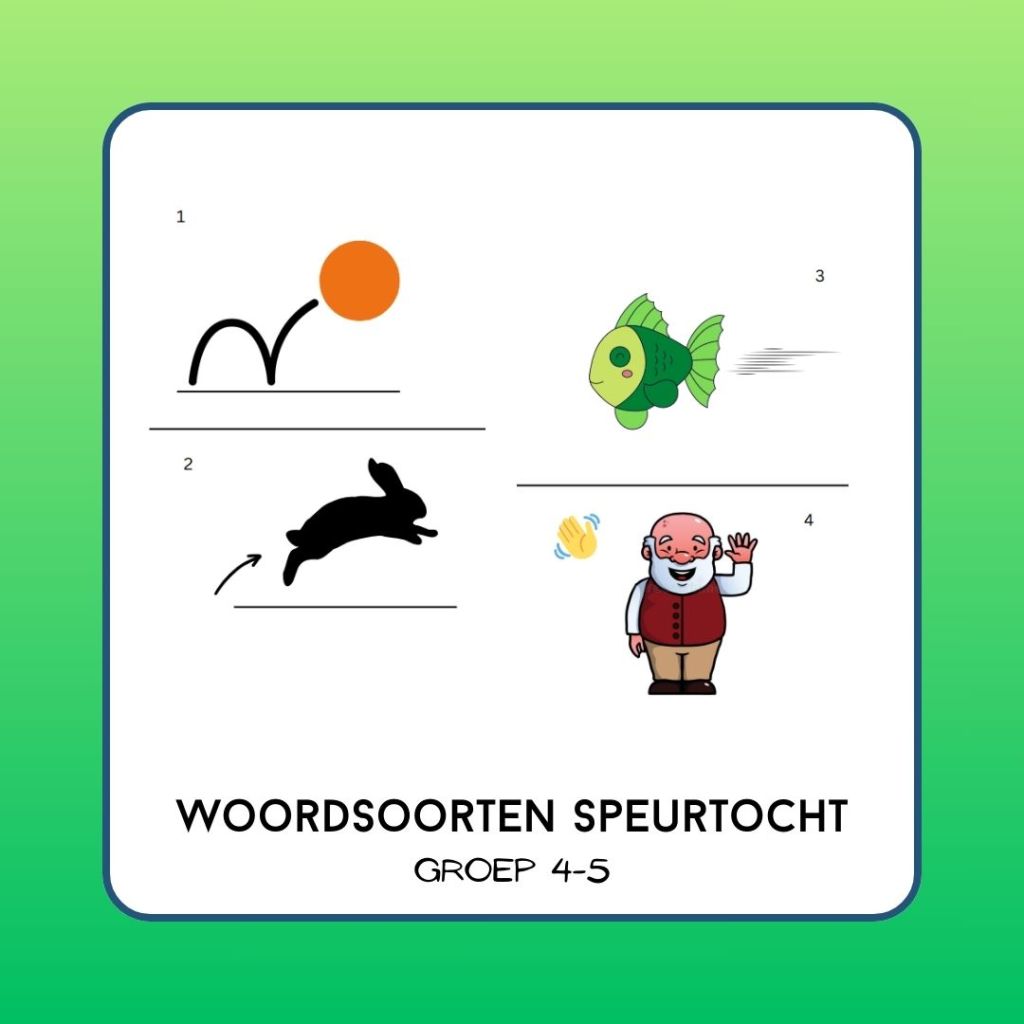 Met deze speurtocht oefenen de leerlingen de woordsoorten lidwoord, bijvoeglijk naamwoord, zelfstandig naamwoord en werkwoord. Hang de platen op en laat hen een zin maken met de verschillende woorden, zoals in het voorbeeld van de molen.