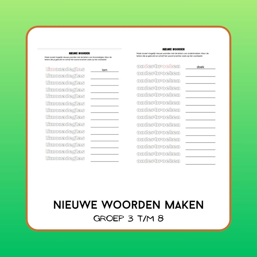 Van de letters van een lang woord proberen de leerlingen zoveel mogelijk nieuwe woorden te maken door de letters te kleuren en het woord op te schrijven.
