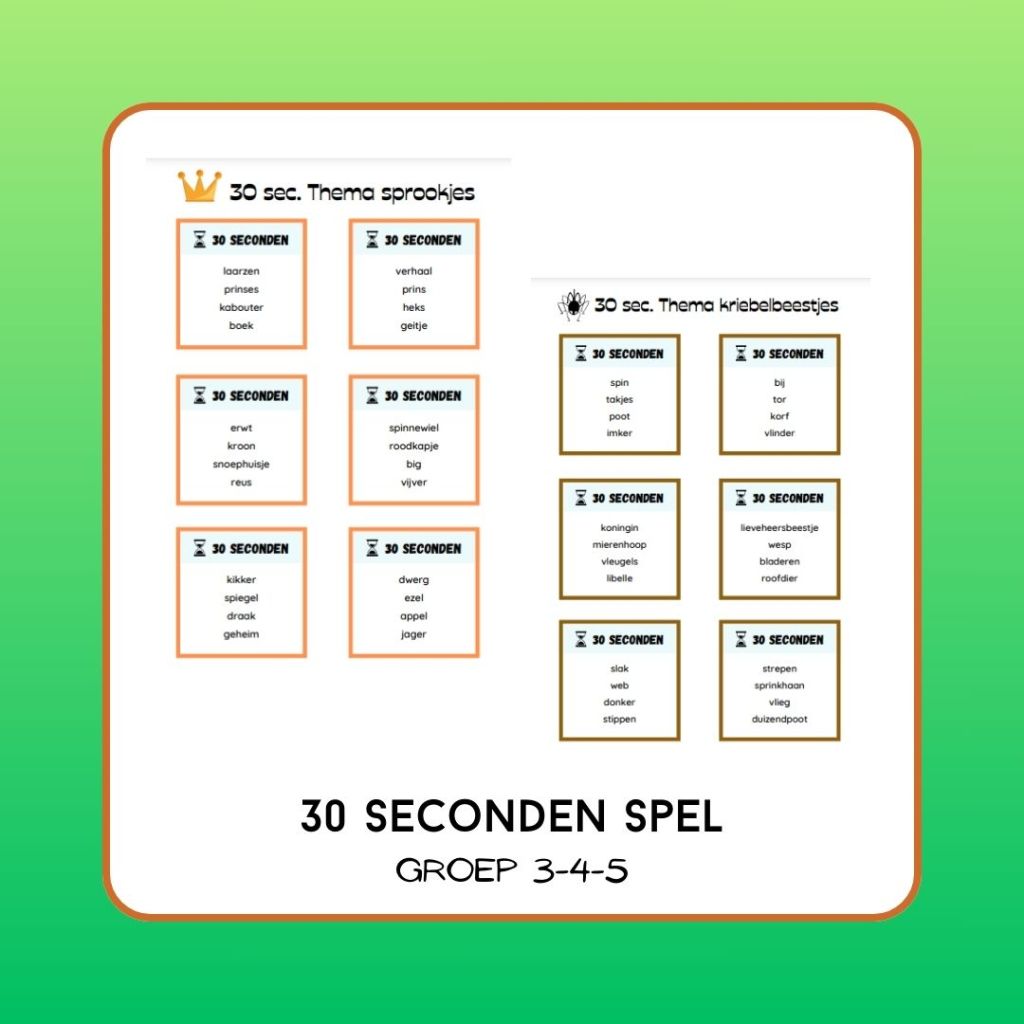 Oefen met woorden binnen een thema in de klas. Draai de timer om en omschrijf in 30 tellen zoveel mogelijk woorden op het kaartje.